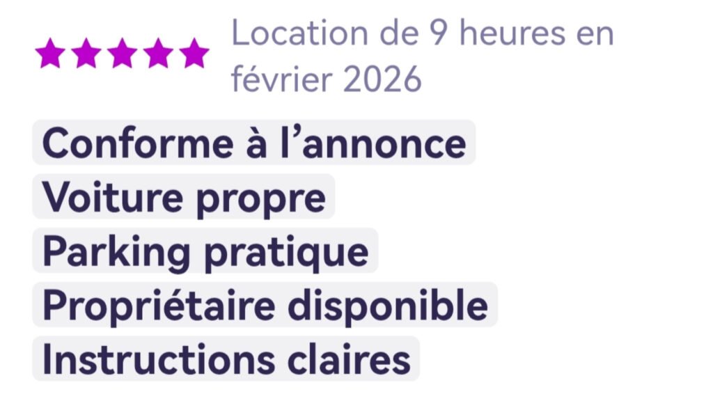 Voici un exemple réel récent d’avis client certifié après une location de voiture en autopartage via Getaround.